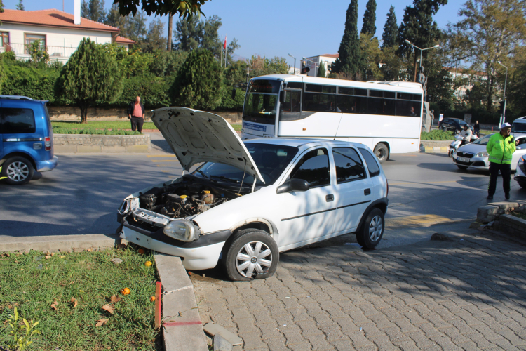 Aydın'ın Efeler ilçesinde 17 yaşındaki ehliyetsiz sürücü, direksiyon hakimiyetini kaybetmesi sonucu refüje çarparken, kazada 2 kişi yaralandı.