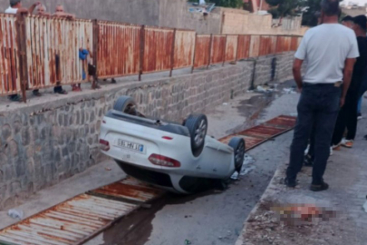 Şanlıurfa'nın Ceylanpınar ilçesinde, el freni indirilen park halindeki bir otomobil, kendiliğinden hareket ederek tahliye kanalına devrildi.