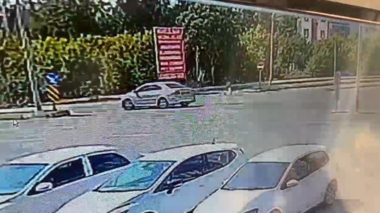 Bisiklet sürücüsünün yaralandığı anlar saniye saniye görüntülendi.
