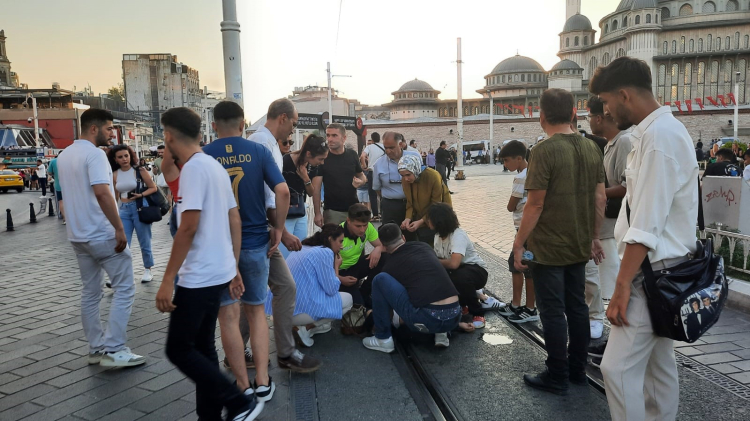 Bazı vatandaşlar nöbet geçiren kadının ayaklarını kaldırırken, bazıları da başının altına çanta koydu. İhbar üzerine olay yerine sağlık ekipleri sevk edildi. Epilepsi nöbeti geçiren genç kız, yapılan ilk müdahalenin ardından Taksim Eğitim ve Araştırma Hastanesi'ne kaldırılarak tedavi altına alındı.
