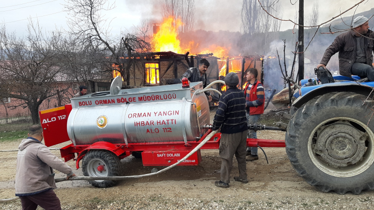 Bolu'nun Mudurnu ilçesinde bir evde çıkan yangın bitişiğindeki ahıra da sıçradı.