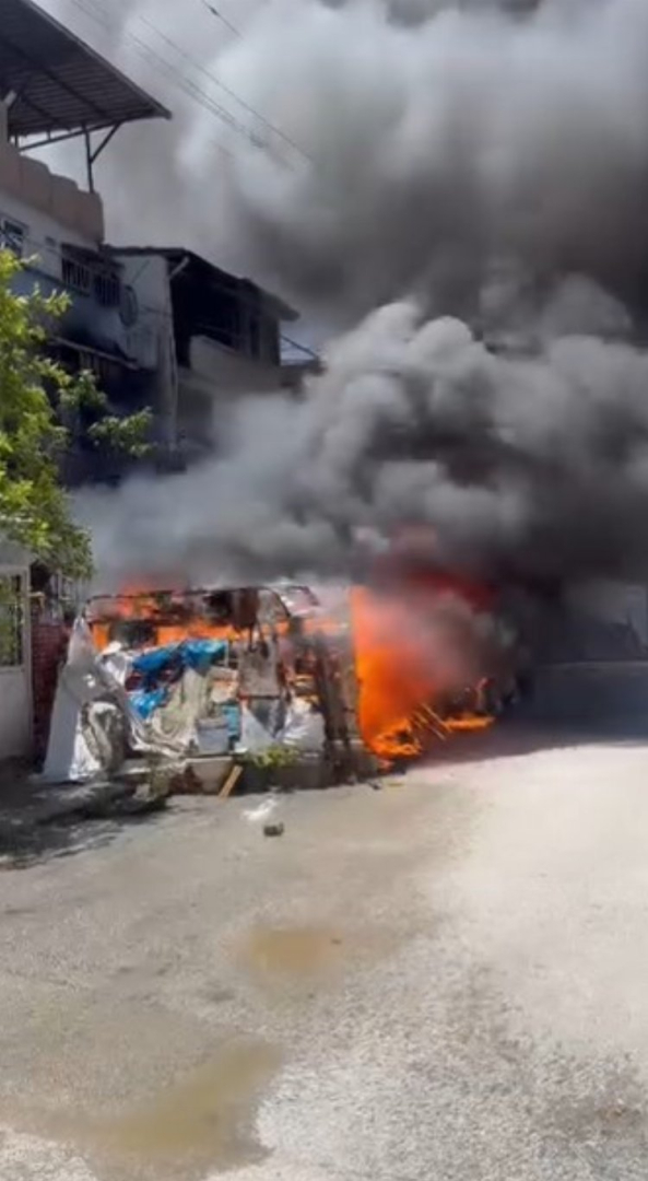 Hatay'ın Antakya ilçesinde evde başlayan yangından sıçrayan alevler, park halindeki aracı kullanılmaz hale getirdi.