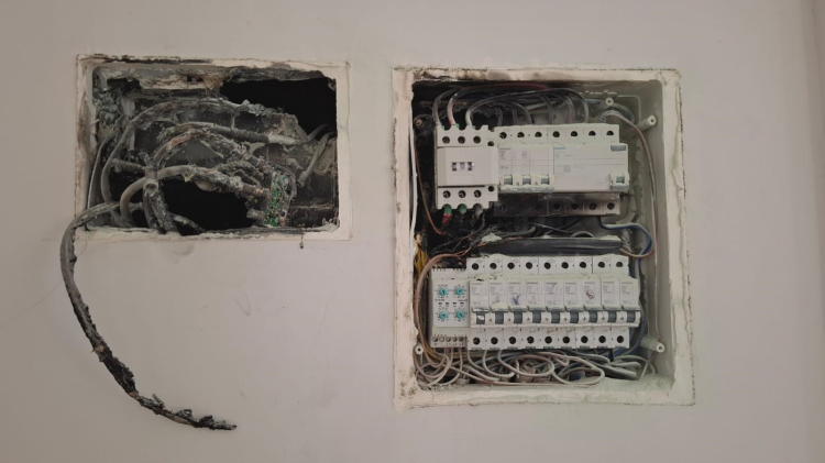 Evde yaşayanların müdahalesiyle yangın büyümeden kontrol altına alınarak söndürüldü. Elektrik panosu büyük bir bölümü zarar görürken olayla ilgili inceme başlatıldı.