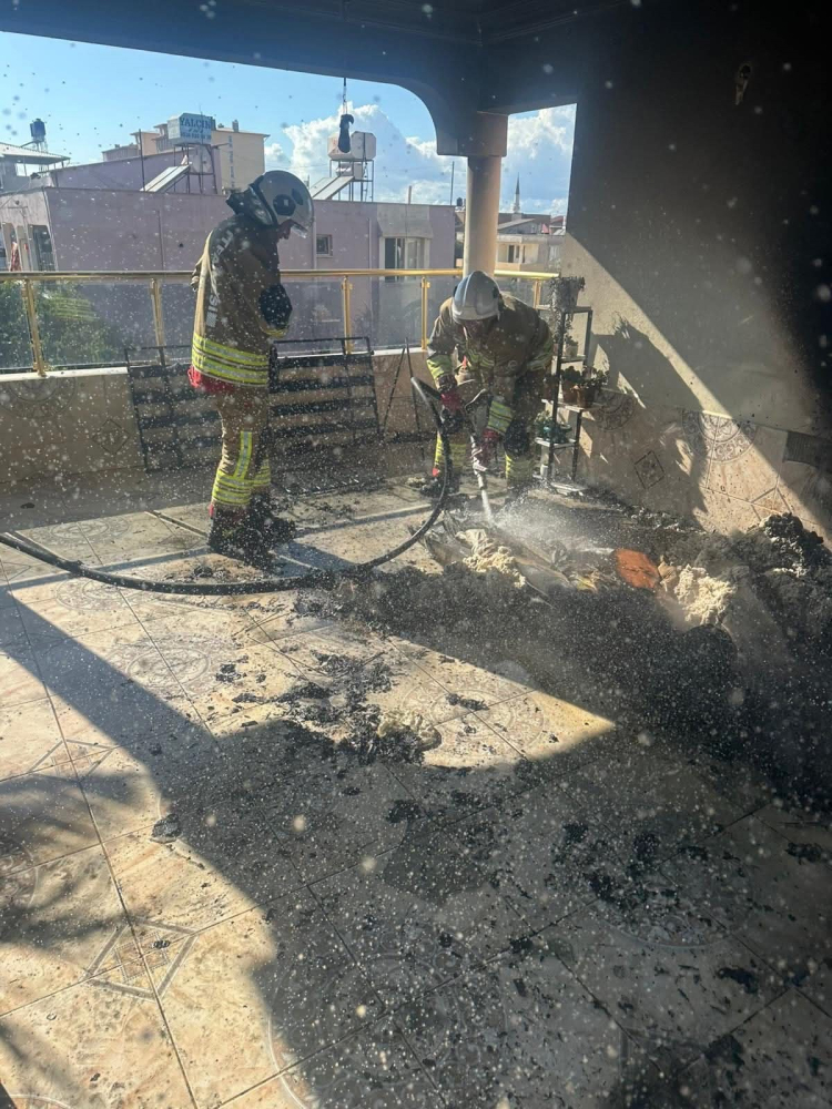 Hatay’ın Reyhanlı ilçesinde evin balkonunda çıkan yangını kısa sürede kontrol altına alındı.