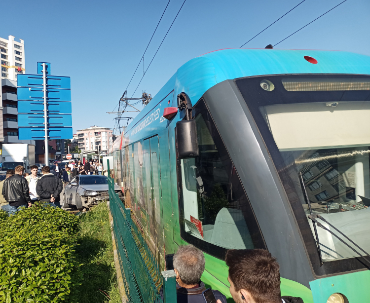 Samsun'da kırmızı ışık ihlali yapan otomobilin tramvay ile çarpıştığı trafik kazası maddi hasarla atlatıldı.