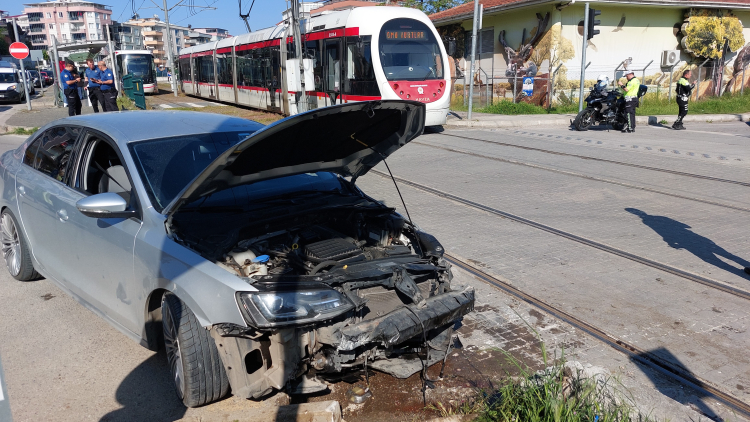 Facia yaşanacaktı: Kırmızı ışık ihlali yapan otomobil tramvay ile çarpıştı