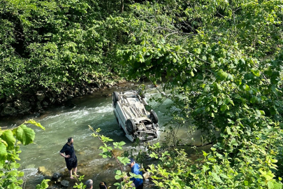 Trabzon'da bir araç, sürücüsünün direksiyon hakimiyetini kaybetmesi sonucu dereye uçtu.