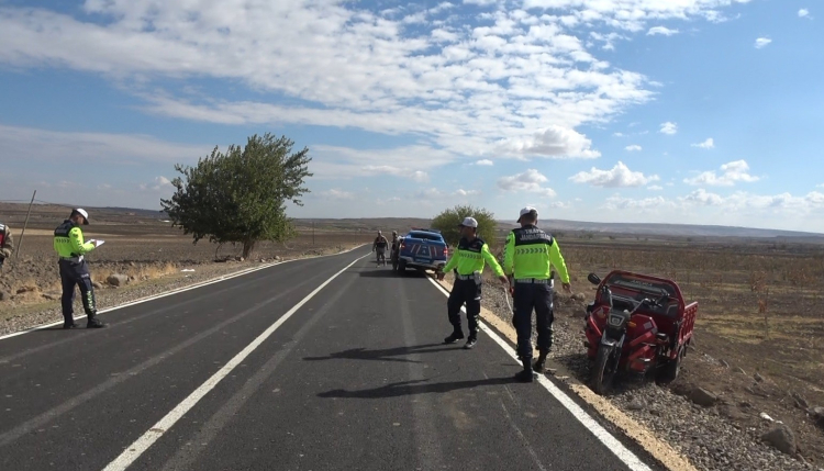 Kilis'in Polateli ilçesine bağlı Polatbey köyü civarında meydana gelen trafik kazasında üç tekerlekli elektrikli motosikletin devrilmesi sonucu karı koca ağır yaralandı.