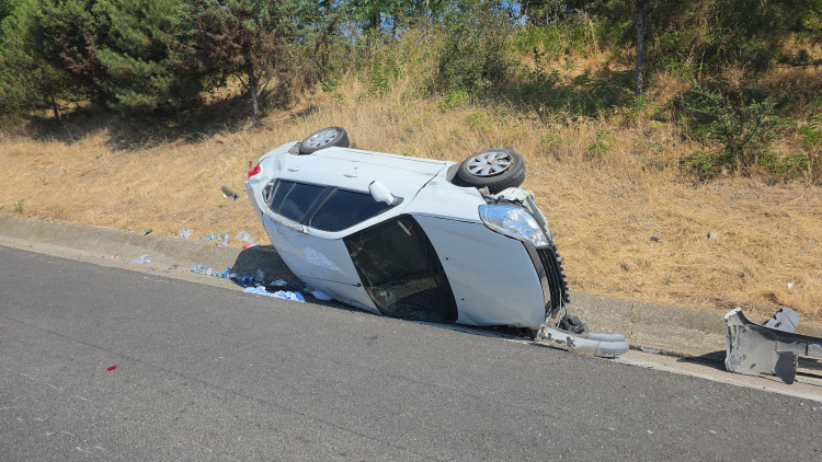 Anadolu otoyolu Düzce kesiminde sürücüsünün direksiyon hakimiyetini kaybettiği otomobil takla attı.