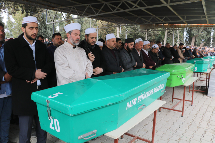 Hatay'da servis minibüsünün park halindeki tıra çarptığı kazada hayatını kaybeden 6 kişi, kılınan cenaze namazının ardından defnedildiler.