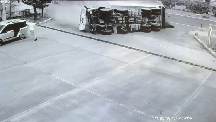 Öte yandan, kaza anı güvenlik kamerasına yansıdı. Görüntülerde kamyonun kamyonete çarpması ardından yan yatarak akaryakıt istasyonuna girme anları ve o sırada istasyonda bulunan vatandaşların kazayı kıl payı atlatması yer aldı. Olayla ilgili inceleme başlatıldı.
