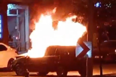 Gaziantep'te kontrolden çıkan otomobil kaza yaparak alev aldı.