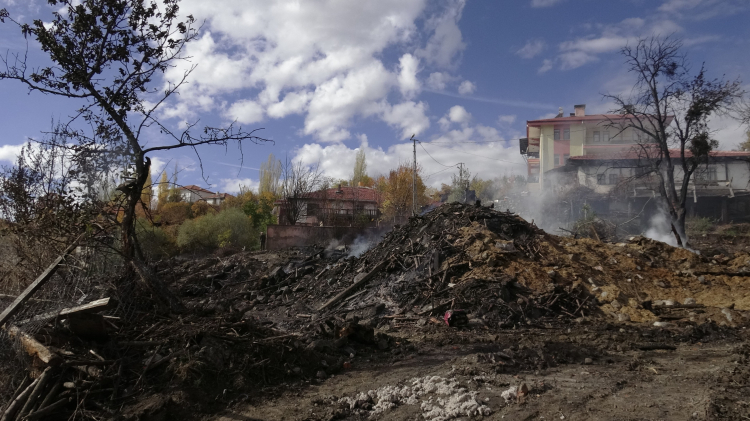 Ekipler tarafından söndürülen yangından geriye moloz yığınları kaldı.