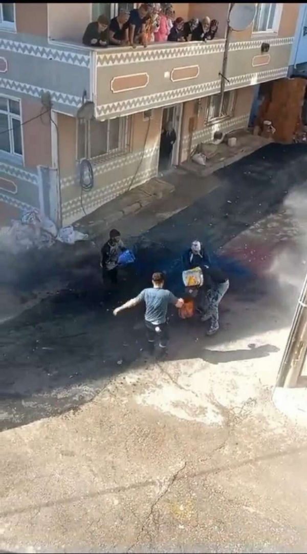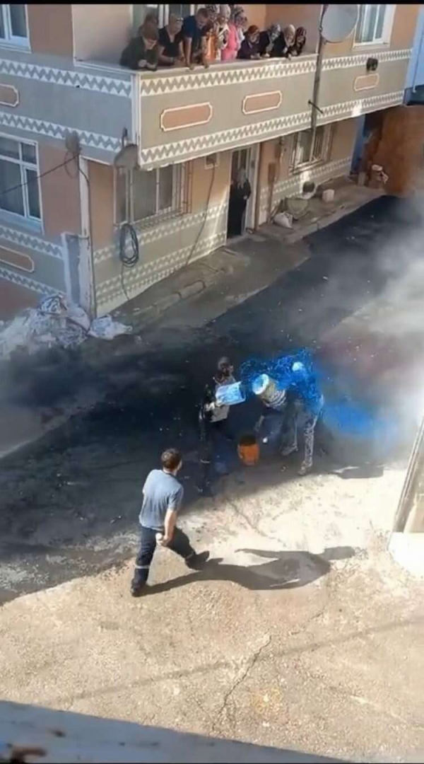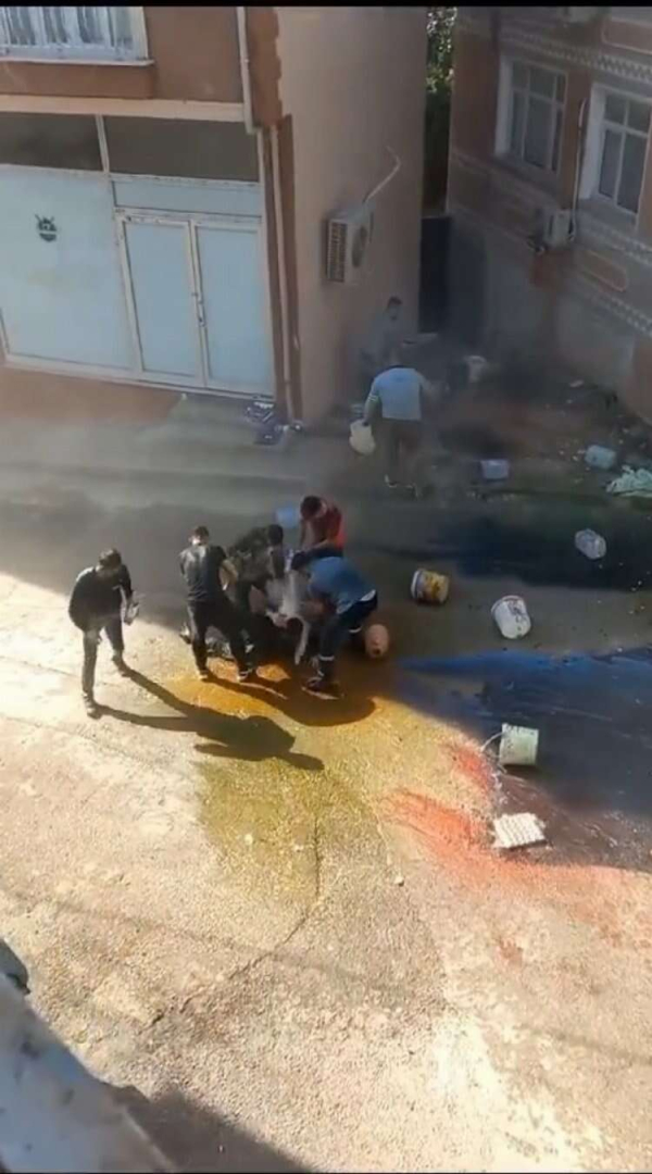 Kız tarafının yakınları tarafından hazırlanan boyalar damat kapıya gelince başından aşağı döküldü.