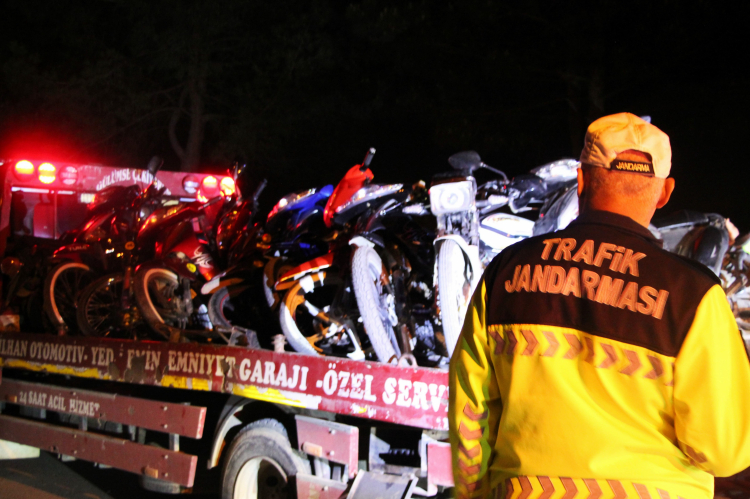 Çekiciye yüklenerek yediemin otoparkına götürülen motosikletlerin sürücülerine yaklaşık 400 bin TL cezai işlem uygulandı. Jandarmaya yakalanan gençlerin, çekici üzerindeki motosikletlerin önünde poz verdiği anlar da dikkatlerden kaçmadı.