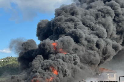 Bilecik'te bir soğuk hava deposu önündeki plastik kasalar tutuştu, gökyüzünü siyah duman kapladı.