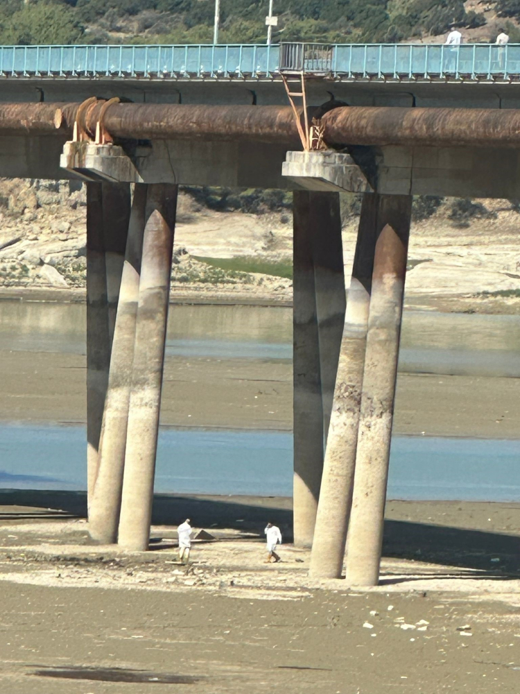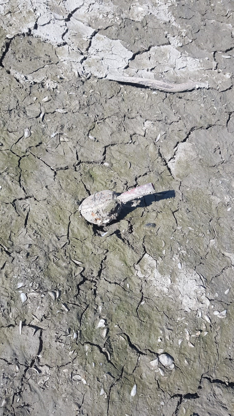 Adana'da suların çekildiği Seyhan Baraj Gölü'nde el bombası bulundu.
