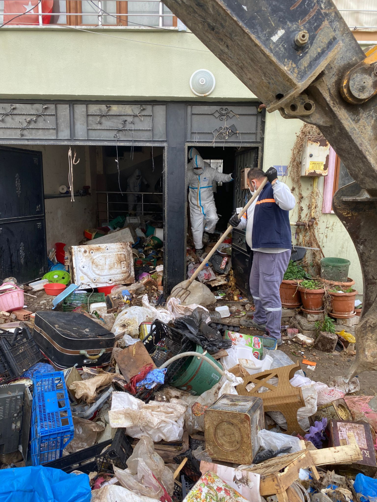 Emniyet ve Savcılık tarafından belediyeye iletilen bildirim üzerine harekete geçen ekipler, evde kapsamlı bir çalışma yürüttü. Yapılan incelemelerde, binanın odaları, merdivenleri, koridorları ve çatı katının çeşitli atıklarla dolu olduğu tespit edildi.