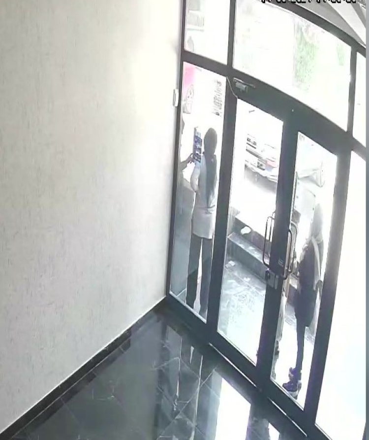 Yüzlerini eşarp ile gizleyen 3 kadın bir apartmanın önüne gelerek giriş kapısını zorlayarak açtı.