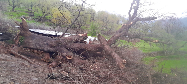 Yamaçtan kayan ağaç, İzzettin Ekinci’ye ait küçükbaş hayvan ağılının üzerine devrildi.