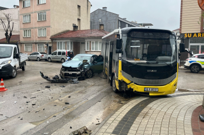 Halk otobüsü ile otomobil çarpıştı: 3 yaralı