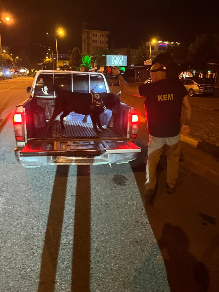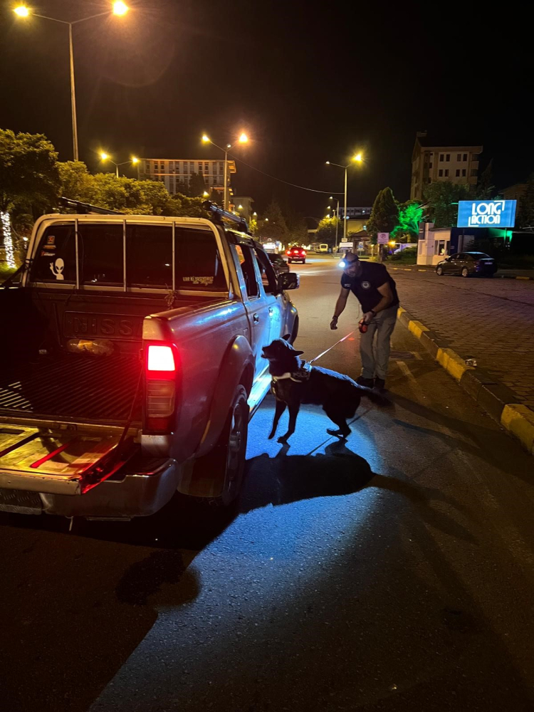 Yapılan uygulamada, durdurulan bir araçta narkotik köpeği Ivan tarafından tek tek arandı.