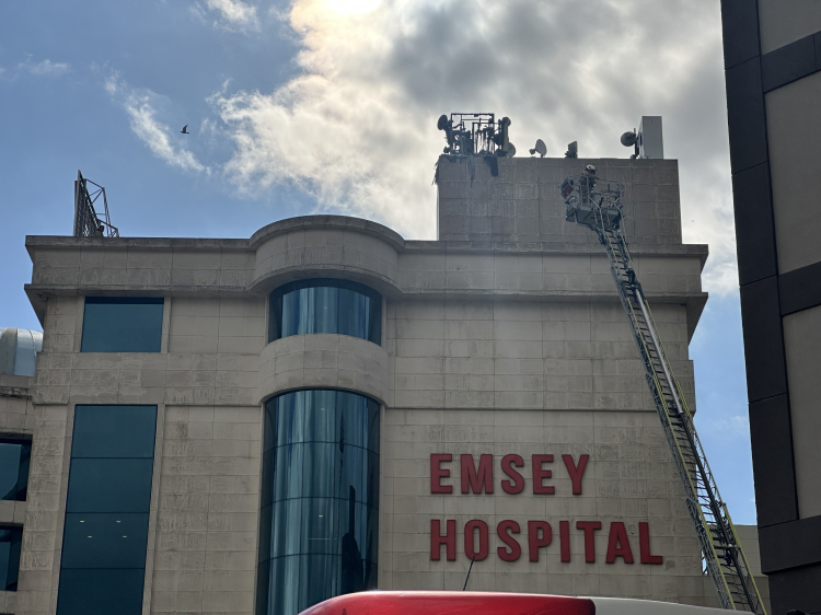 İstanbul'un Pendik ilçesinde Özel Emsey Hastanesi'nin çatısında yer alan baz istasyonunda yangın çıktı.