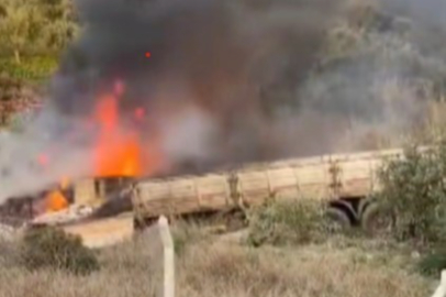 Hatay’da sürücüsünün kontrolünden çıkan tır, yol kenarındaki barakaya çarparak alevlere teslim oldu.