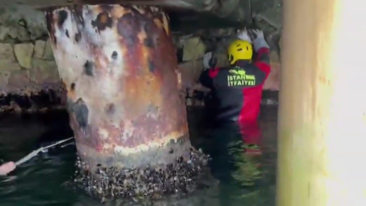 Heybeliada’da iskele altında mahsur kalan kedi, itfaiye ekiplerinin çalışmasıyla kurtarıldı.