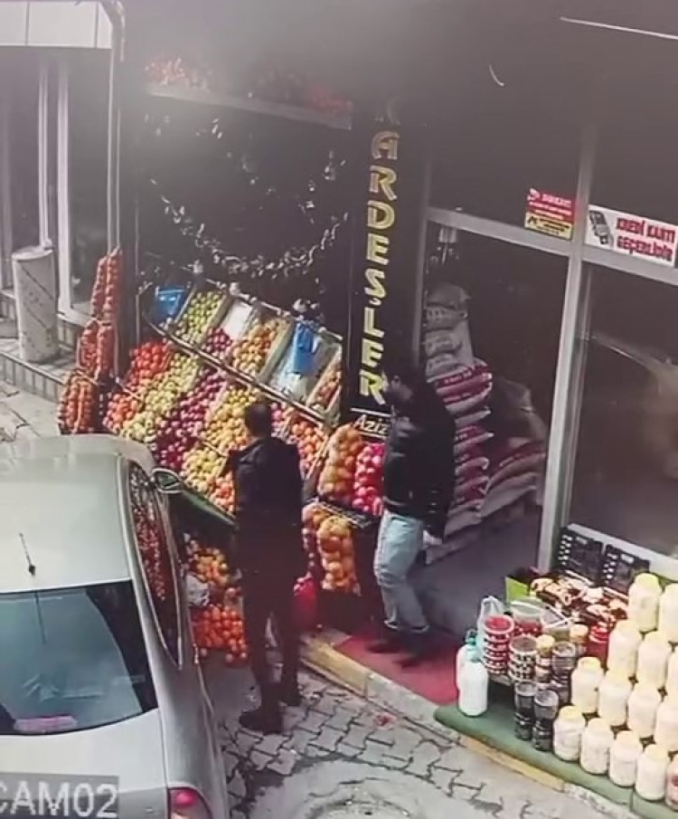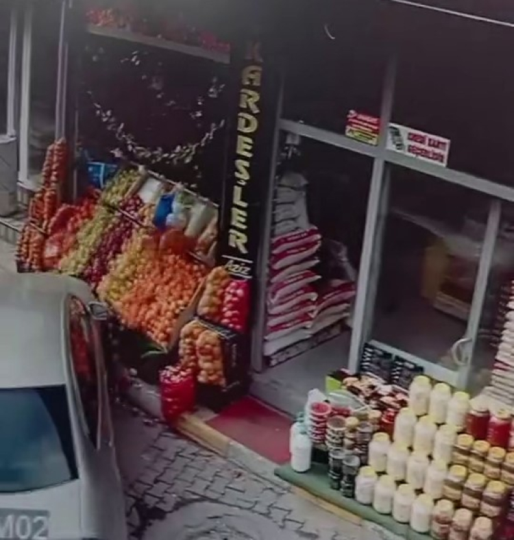 Çarpmanın etkisiyle manava ait meyve kasaları devrilirken meyveler yere saçıldı. Olay, çevredeki güvenlik kameralarına saniye saniye yansıdı. Kazada yaralanan olmadığı öğrenildi.