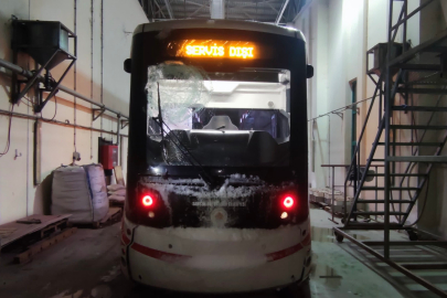 Samsun’da içine taş sıkıştırılıp atılan kartopu, tramvayın ön camını kırarak servis dışı kalmasına yol açtı.