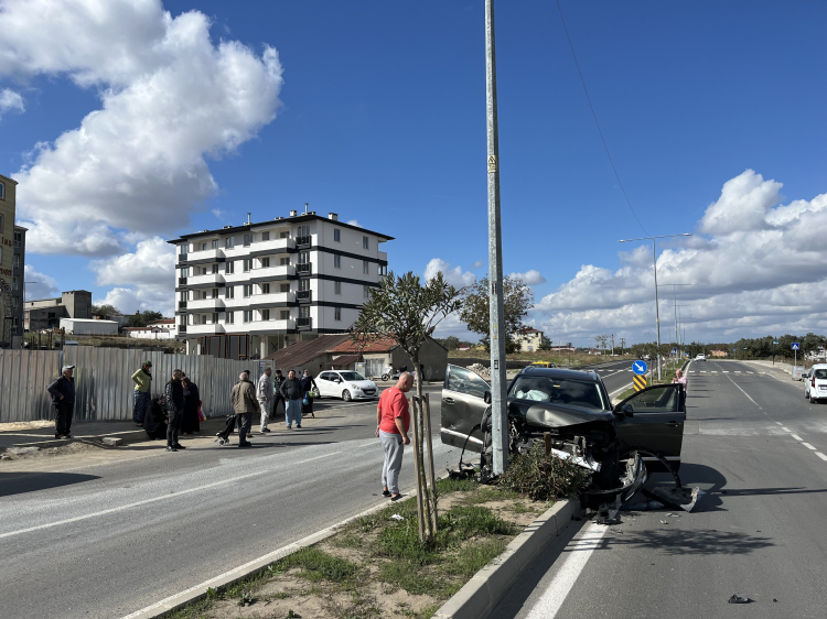 Kaza sonrası kontrolden çıkan araçlardan biri orta refüjde bulunan aydınlatma direğine çarptı. Diğer otomobil de yol kenarına savruldu.