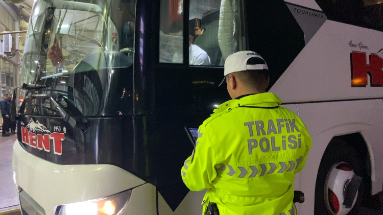 İnegöl Emniyet Müdürlüğü Trafik Büro Amirliği ekipleri, İnegöl Şehirlerarası Otobüs Terminali'nde şehirlerarası yolcu otobüslerini tek tek durdurarak denetim yaptı. Denetimlerde otobüs sürücülerinin ehliyet, ruhsat ve diğer gerekli belgeleri kontrol edilerek, araçların trafik kurallarına uygunluğu incelendi. Ekipler ayrıca yolculara emniyet kemeri takmalarının hayati önem taşıdığı konusunda bilgilendirmede bulundu. Otobüs içerisindeki yolcular tek tek uyarılırken, sürücülere de uzun yolculuklarda dikkatli olmaları ve hız kurallarına uymaları gerektiği hatırlatıldı.
