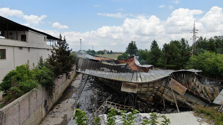 İsabet sonrası depo, alevlere teslim olarak küle döndü.