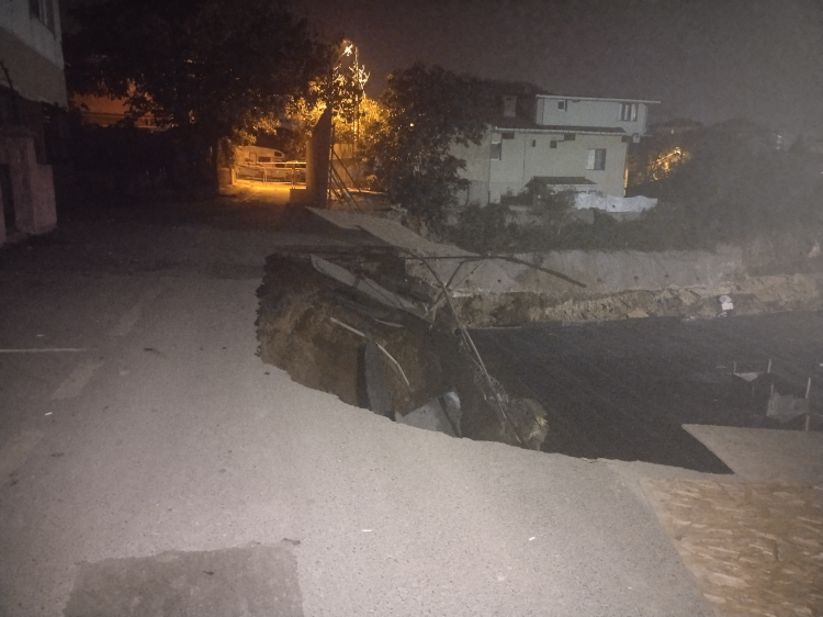 Olay gece saatlerinde Küçüksu Mahallesi Tüylüoğlu Sokak üzerinde meydana geldi. Sokak üzerindeki inşaatın istinat duvarı yol ile birlikte çöktü. Olay sonucu ana su boru hattı patladı. İhbar üzerine olay yerine polis itfaiye ve zabıta ekipleri sevk edildi.