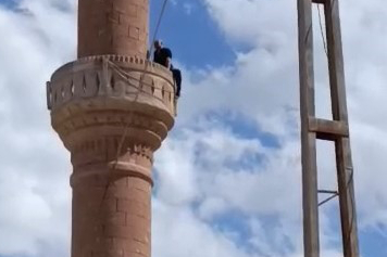 Minarede biri olduğunu gören vatandaşlar, şahsı ikna etmeye çalıştı. Şahıs, vatandaşın ikna çabalarına karşılık vererek bir süre sonra minareden aşağı indi.