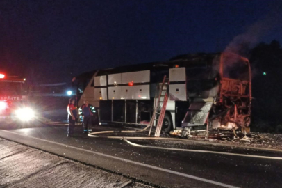 İşçileri bıraktıktan sonra alev alan işçi servisi küle döndü