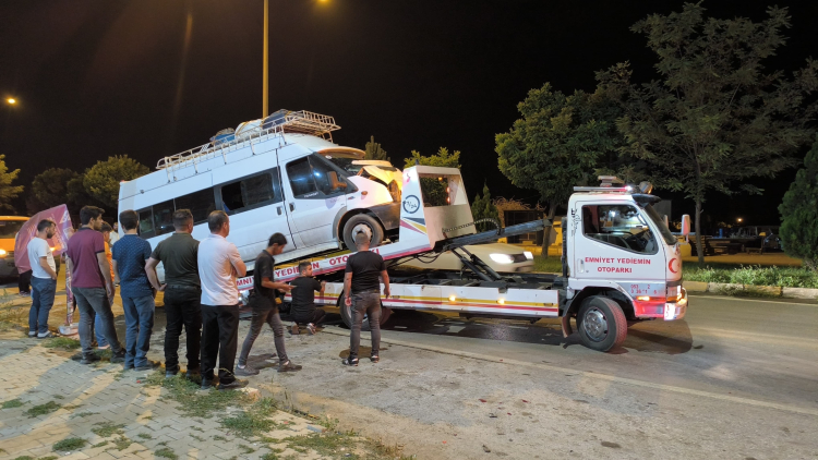 İşçileri Taşıyan Minibüs Kaza Yaptı