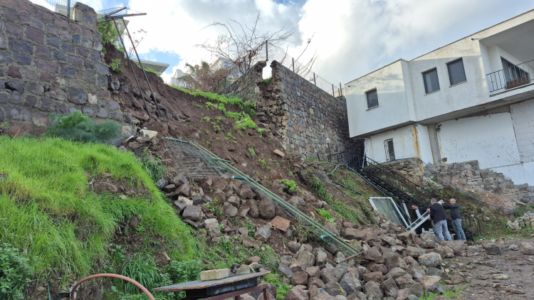 Muğla'nın Bodrum ilçesinde etkili olan sağanak yağışın ardından istinat duvarı yıkıldı.