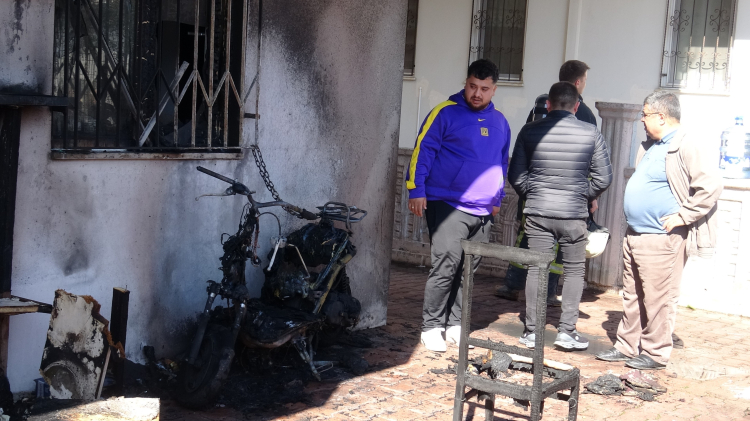 İhbarla verilen adrese gelen Antalya Büyükşehir Belediyesi İtfaiye Daire Başkanlığı’na bağlı ekipler, yangına müdahale ederek alevler üst katlara sıçramadan söndürdü. Yangın nedeniyle motosiklet kullanılamaz hale gelirken, alevlerin sıçradığı dairede küçük çaplı maddi hasar meydana geldi. Kültür Mahallesi Muhtarı Hasan Yavaşlar, "Komşular hemen koşmuş, yanında bir araç da varmış. Neredeyse araç da yanıyormuş. İtfaiye zamanında gelip müdahale etmese binanın üst katları yanacakmış neredeyse. Evin içine de sıçramış. Neden çıktığı şu anda belli değil" dedi.