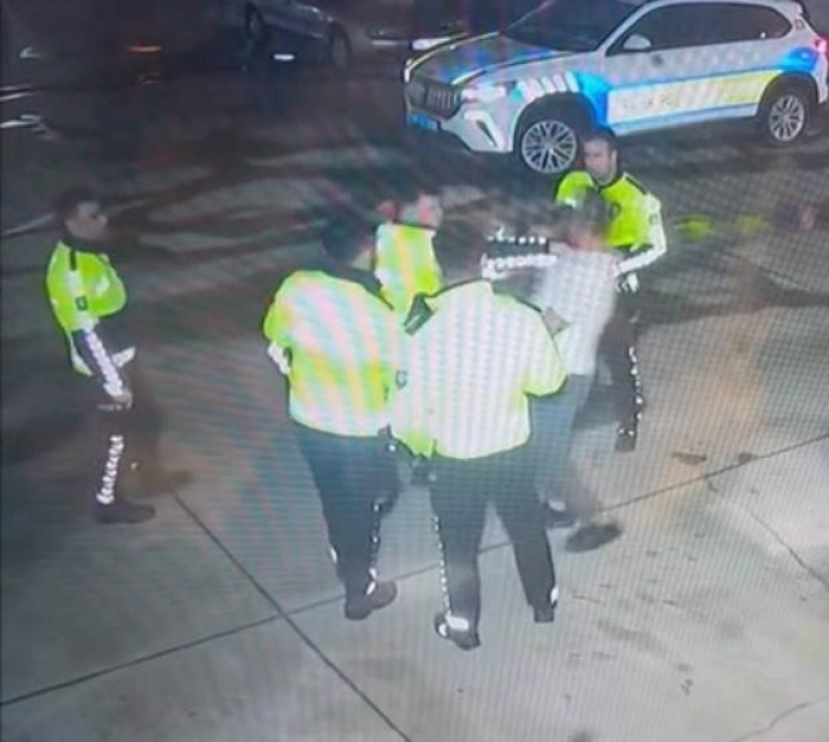 Olaya karışan polisler, başlatılan idari soruşturma kapsamında açığa alınırken darp anları ise bir işyerinin güvenlik kamerasına yansıdı.