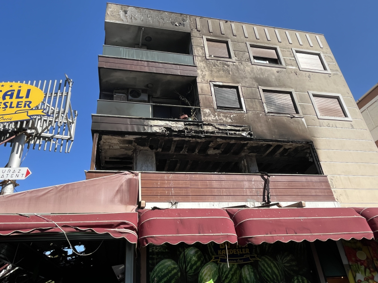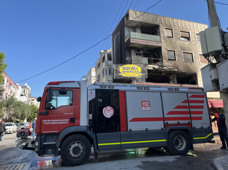 İzmir’in Buca ilçesinde bir binanın birinci katında çıkan yangın üst katlara ve altta bulunan manav dükkanına zarar verdi.