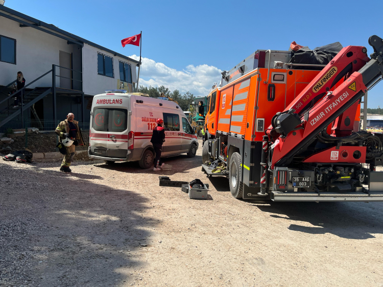 İzmir'de kontrolden çıkan hafriyat kamyonunun bir şantiye alanında bulunan 2 katlı prefabrik eve çarpması sonucu meydana gelen kazada, sürücü olay yerinde hayatını kaybetti.