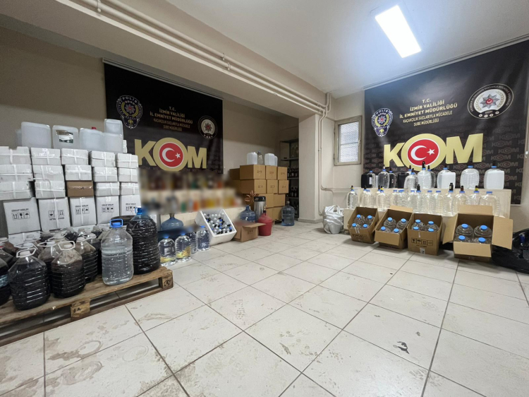 İl Emniyet Müdürlüğü Kaçakçılık Suçlarıyla Mücadele Şube Müdürlüğü ekipleri savcılık koordinesinde, halk sağlığını tehdit eden sahte etil alkol ve kaçak içki üretimi ile ticaretinin önlenmesine yönelik geniş kapsamlı bir çalışma başlattı. Ekiplerce Aliağa, Balçova, Bayraklı, Bornova, Buca, Karabağlar, Karşıyaka, Konak ve Ödemiş ilçelerinde tespit edilen adreslere eş zamanlı gerçekleştirilen operasyonlarda 3,5 ton taklit etiketli etil alkol ile 600 şişe kaçak ve sahte alkollü içki ele geçirildi.