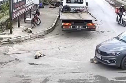 İzmir'in Bornova ilçesinde bir sürücü, yolda yatan bir köpeğin üzerinden geçip, arkasına bile bakmadan gitti.