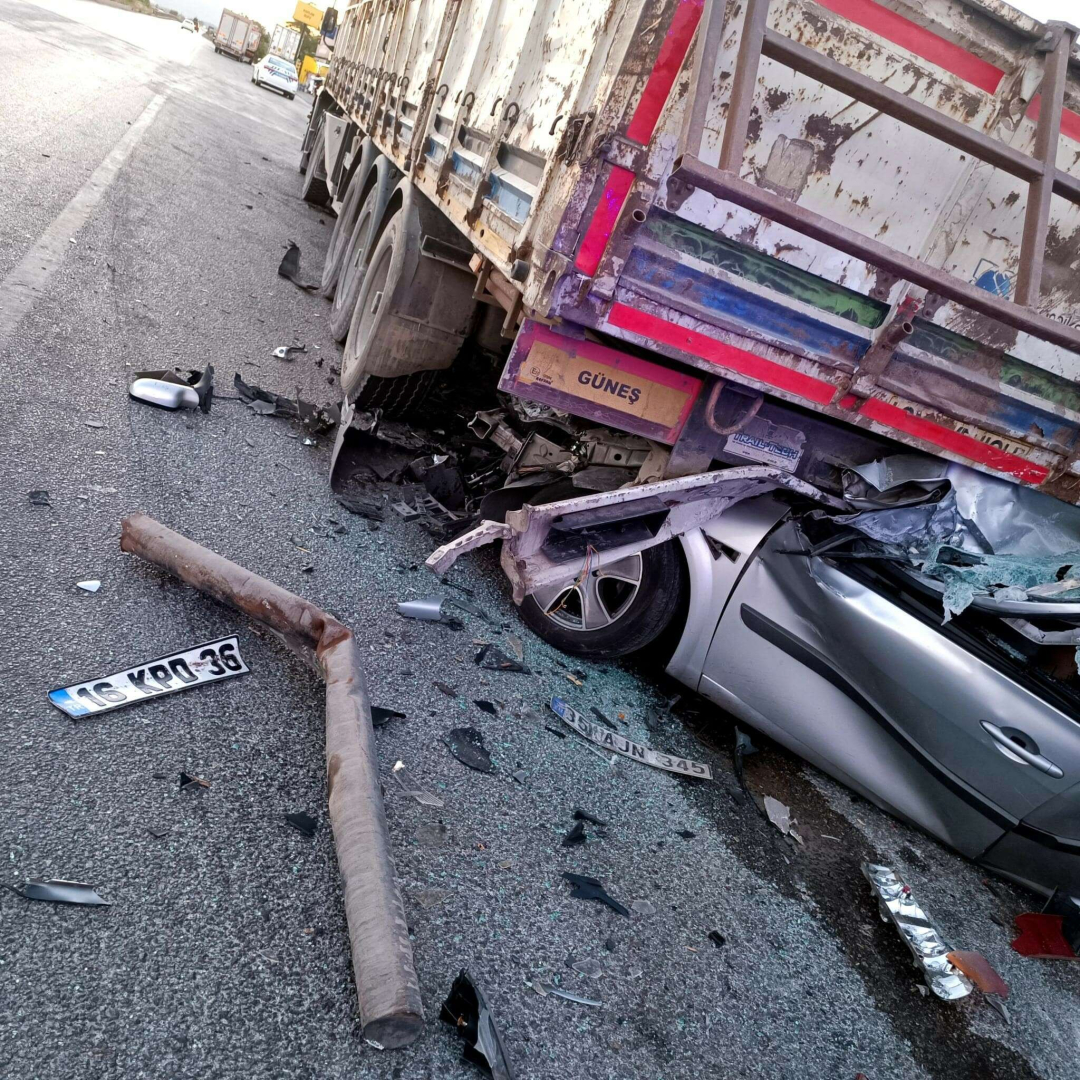 Edinilen bilgiye göre kaza; Bursa - İzmir karayolu üzeri Bursa istikameti Karacabey’in Uluabat Mahallesi mevkiinde meydana geldi. Sabaha karşı saat 05.30 sıralarında Bursa - İzmir karayolundan Bursa yönüne seyreden Orhan Çalışkan'ın (46) kullandığı 16 KPD 36 plakalı araç, Uluabat Mahallesi'nde park halinde bulunan ve içerisinde Harun T.'nin (42) uyuduğu 35 BDJ 710 plakalı çekiciye bağlı 35 AJN 345 plakalı dorseye arkadan çarptı.