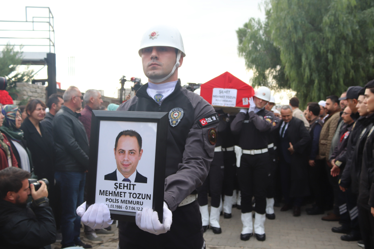 İzmir'in Seferihisar ilçesinde silahlı çatışma ihbarına giden ve saldırgan tarafından tabancayla vurularak yaralandıktan 16 gün sonra kaldırıldığı hastanede şehit düşen polis memuru Mehmet Tozun, gözyaşlarıyla son yolculuğuna uğurlandı.