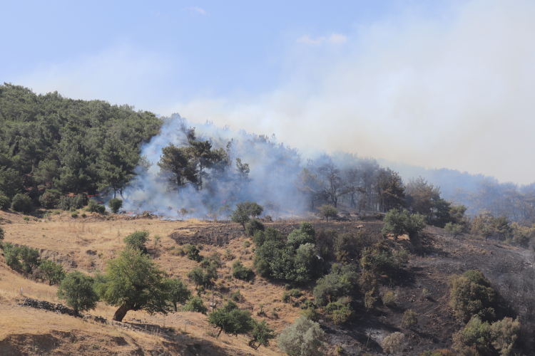 İzmir’in Bornova ilçesi Beşyol Mahallesi'nde saat 13.37 sıralarında başlayan orman yangınına müdahale sürüyor.