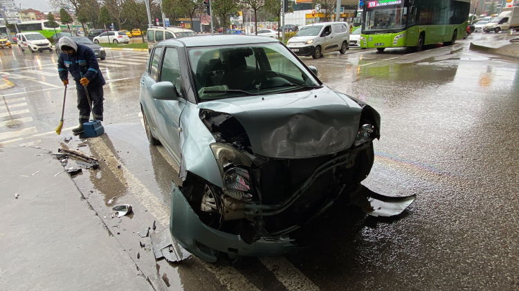 Kocaeli'nin İzmit ilçesinde çarpışan araçlardan kopan parça yoldan geçen yayanın eline isabet etti.