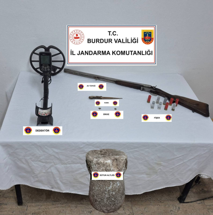 Edinilen bilgiye göre, kolluk birimleri tarafından kaçakçılık ve organize suçlar ile mücadele çerçevesinde yapılan çalışmalar çerçevesinde İl Jandarma Komutanlığı ekipleri tarafından Burdur Cumhuriyet Başsavcılığı koordinesinde il genelinde yapılan planlı çalışmalar neticesinde Y.K. ve Ö.K. gözaltına alındı. Ekipler tarafından yapılan aramalarda; 5 adet tabanca, 1 adet av tüfeği, 6 adet tabanca şarjörü, 128 adet tabanca mühimmatı, 34 adet av tüfeği mühimmatı, 76 adet kurusıkı tabanca mühimmatı, 18 adet obje, 3 adet silah namlusu, 5 adet tetik tertibatı, 9 adet tabanca iğnesi, 1 adet dedektör, 2 adet sikke, 2 adet muhtelif eski eser ele geçirildi.